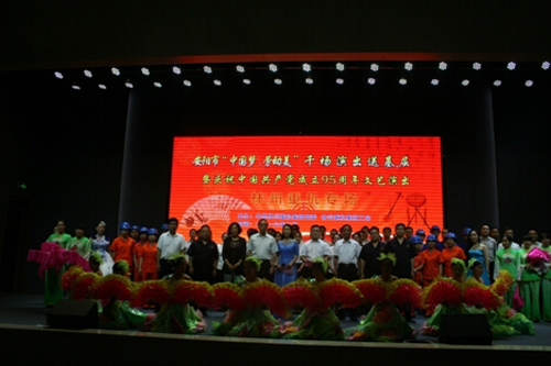 為慶祝中國共產(chǎn)黨成立95周年,樹立典型,表彰先進(jìn),7月1日,公司組織召開了 “七一”表彰會(huì)暨文藝演出活動(dòng)。表彰會(huì)回顧總結(jié)了過去一年來的工作,并對(duì)在公司各條戰(zhàn)線上做出顯著成績(jī)的16名優(yōu)秀共產(chǎn)黨員予以表彰。表彰會(huì)結(jié)束后,公司精心組織排練的文藝節(jié)目向各條戰(zhàn)線上的職工進(jìn)行了精彩的匯報(bào)演出。公司主要領(lǐng)導(dǎo)出席此次會(huì)議并觀看演出。